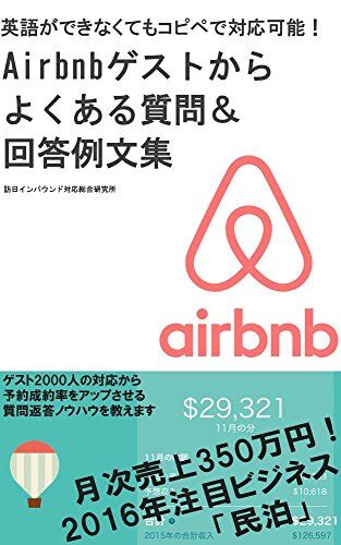 今話題の民泊ビジネス「Airbnb」の、ゲストからの英語の質問の答え方マニュアル本を出版します。表紙も自作です(苦笑)12月5日からダウンロードできます。現在予約受付中。 Airbnbゲストからよくある質問&回答例集 英語ができなくてもコピペで対応可能!…