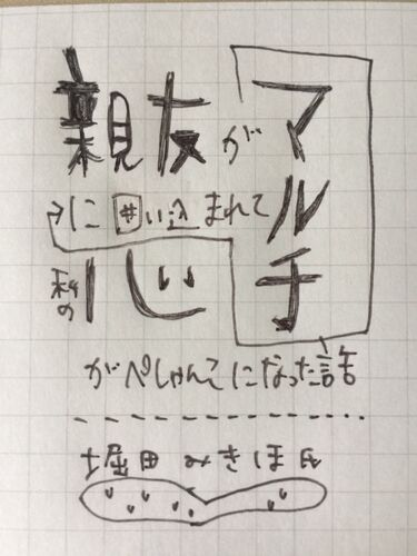 note.mu これの続編を書いて、インスタにあげました。 親友が、カイロプラクティックの名をかぶったマルチ商法にドはまりし、ソーシャルキャピタル(社会関係資本。信頼関係に基づいた人脈資本)を崩壊させていく話です。 すっごく読みづらいと思います、そ…